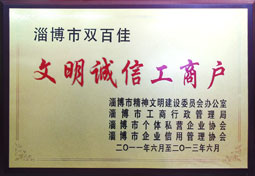 行業誠信經營企業,淄博市文明誠信工商戶,誠實守信,誠信為本。
